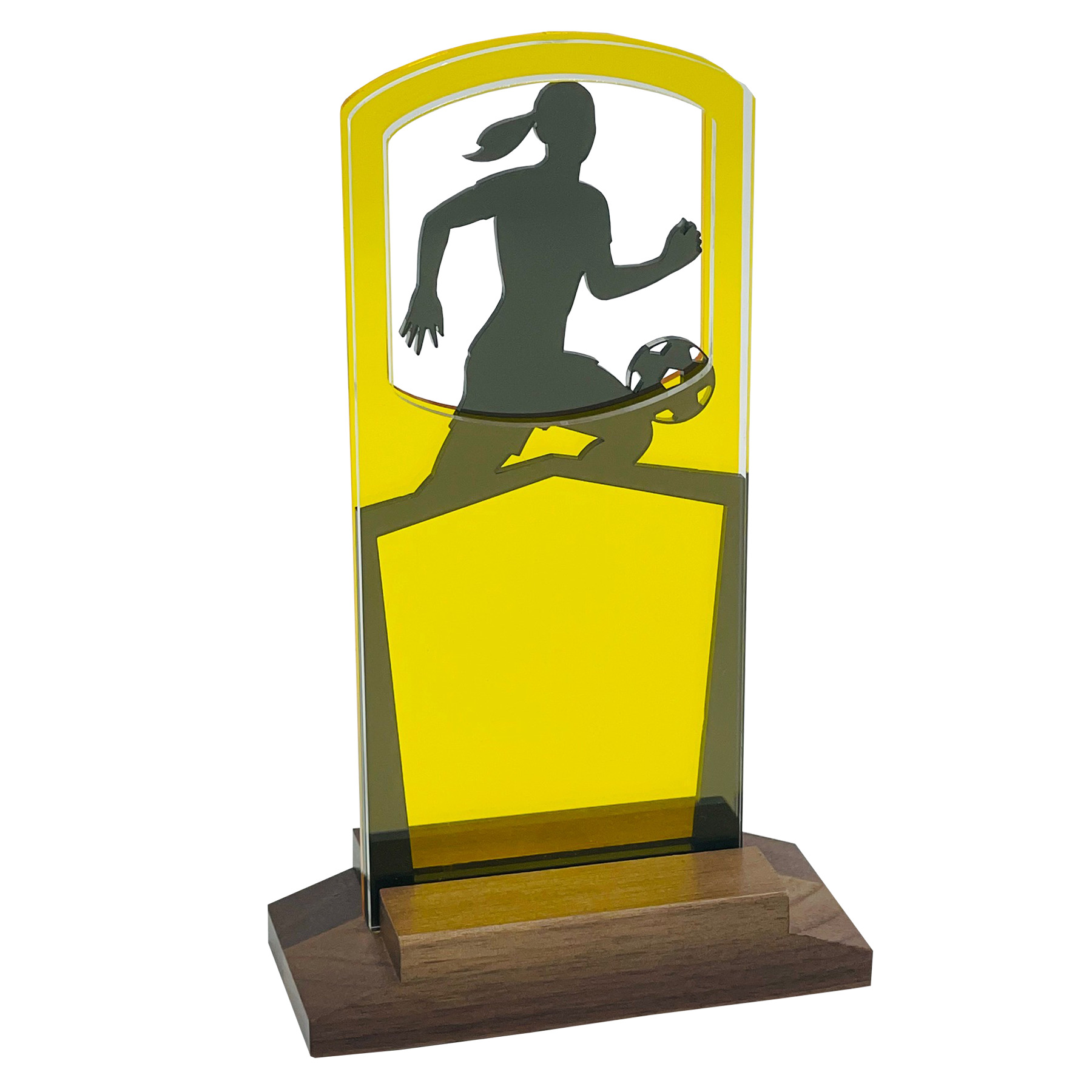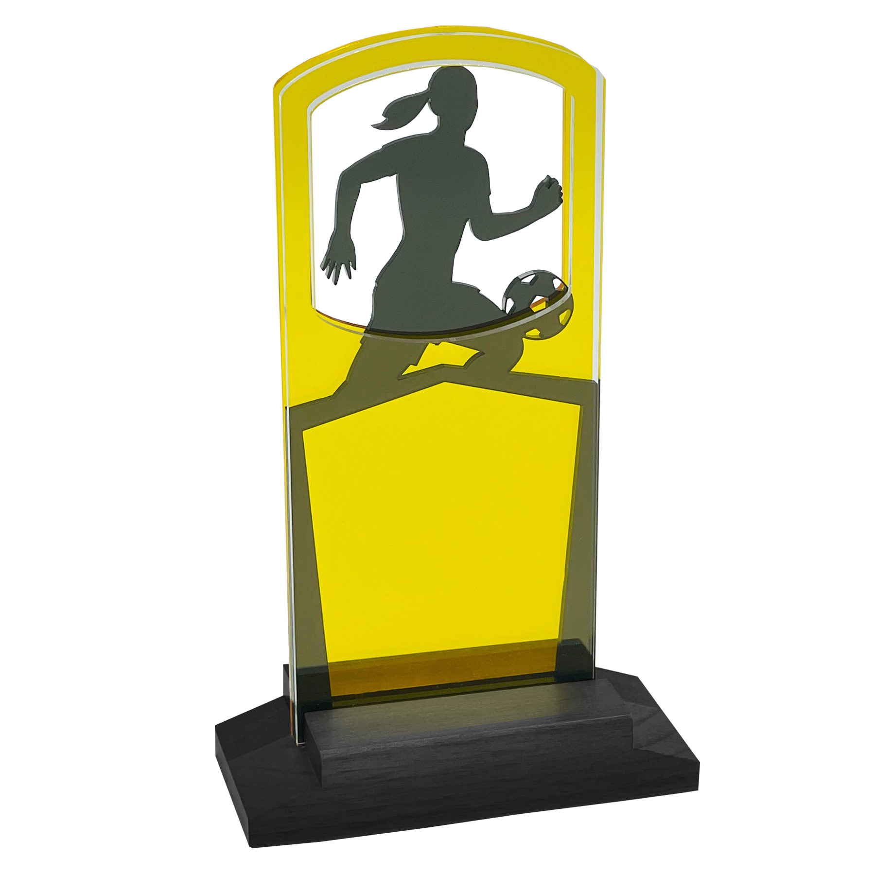 - Tri-layered 0.125” acrylic awards in base